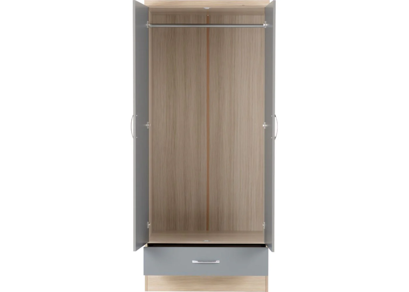 Wholesale Nevada Grey Gloss and Light Oak Effect 4 Piece Bedroom Furniture Set - Grey Bedroom Furniture Set with Light Oak Effect